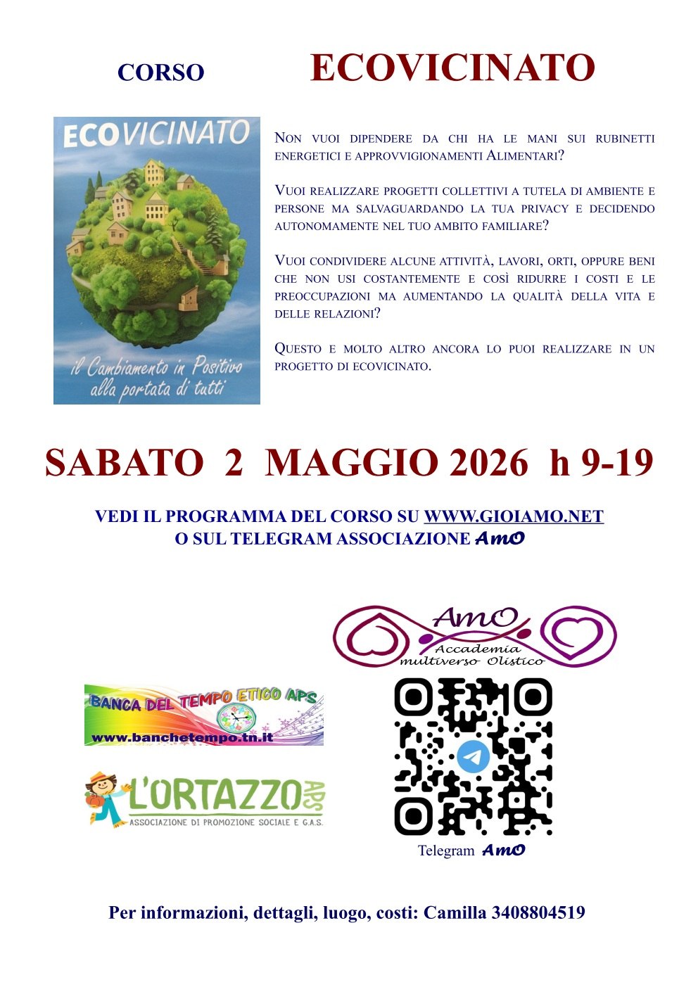Per info su luogo e costi: Camilla 340-8804519