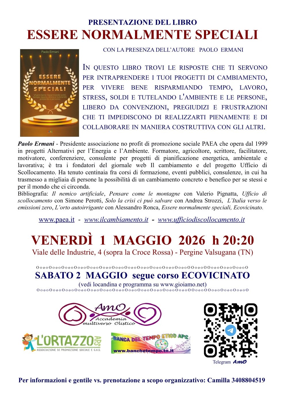 L'1 maggio Paolo Ermani presenta il suo libro "Essere normalmente speciali" (Paea edizioni)